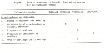 In practice, the community‑level questionnaire was less structured and longer than the individual questionnaires and, to a large extent, it was considered to be the "reference work" on the community. In addition, questionnaires were also drafted for regional and national levels where administrative and planning information was required. For example, if, as in the case of Mexico, one was dealing with an integrated regional development programme, data on how participating agencies differed in their perception of programme objectives or had incompatible administrative or planning procedures were assumed to be of great importance in analysing field‑level co‑ordination among agencies.